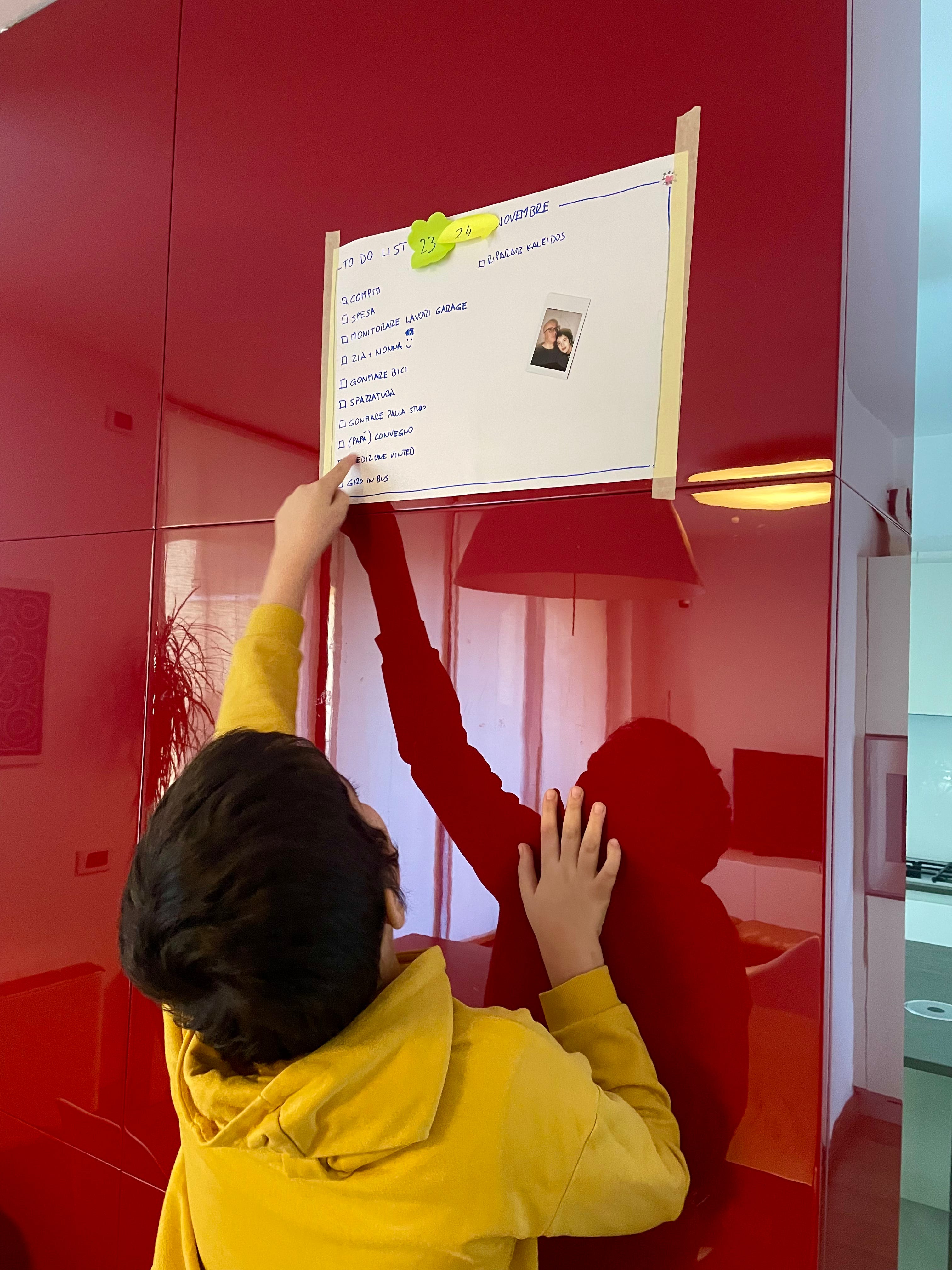 Domenica sera spostiamo la foto sulla parete, come ricordo. La board, invece, finisce nella spazzatura (di nascosto, perché gli altri componenti della famiglia vorrebbero riciclarla). Quello che resta incompleto finisce nella mia to-do list personale e il ragazzo inizia nuove attività, che fa e cambia istintivamente di continuo. Spuntano stanchezza e frustrazione.