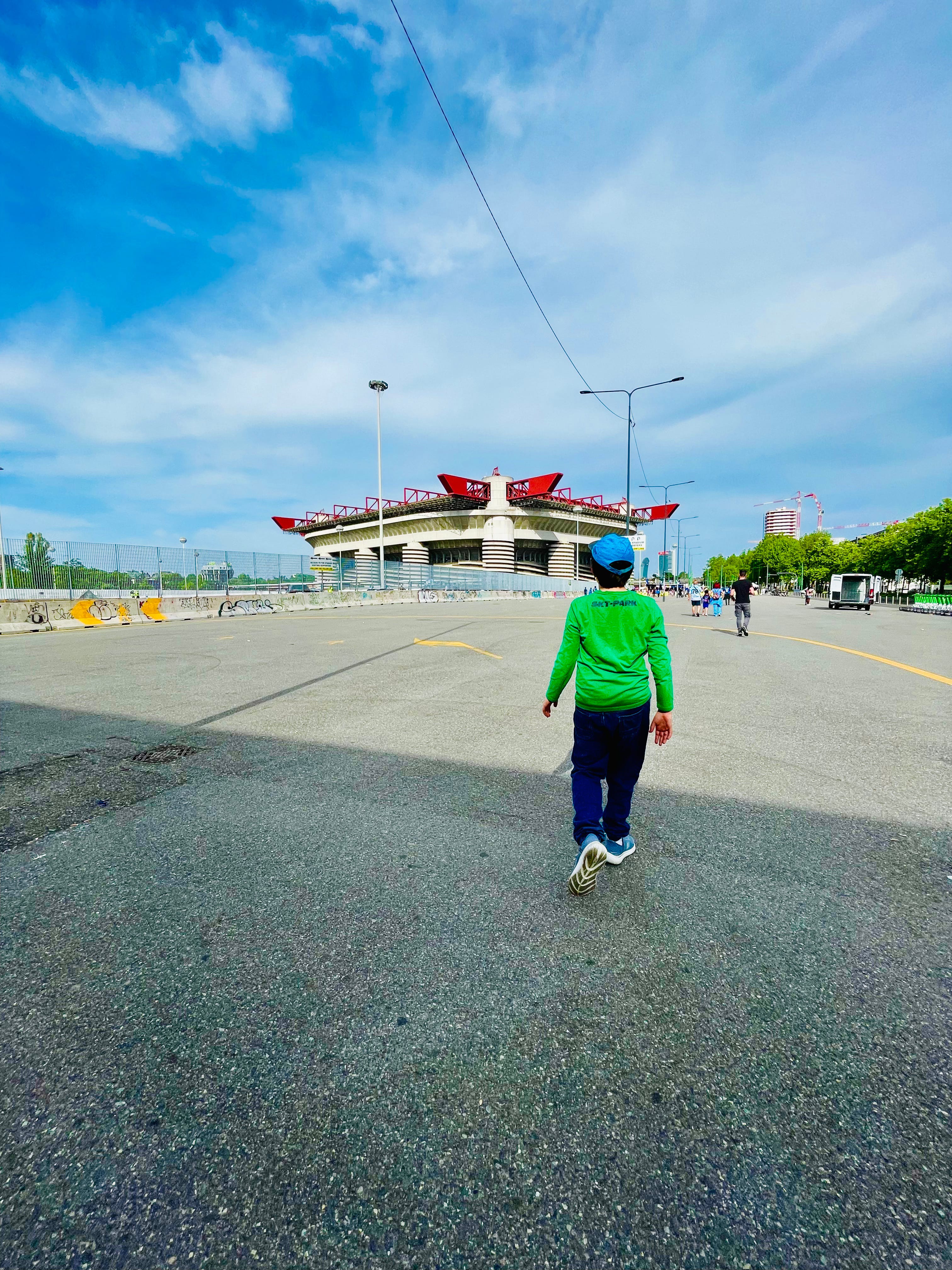 Siccome detesto vagare senza meta, ho pensato di arrivare fino a San Siro per mostrarglielo. Le idee che mi paiono migliori, in realtà, non sono mai altrettanto apprezzate dal mio compagno di viaggio che, non solo non ha capito cosa ci fosse di tanto interessante dietro a uno stadio, ma si è anche rifiutato di andare a vedere i cavalli poco lontano.