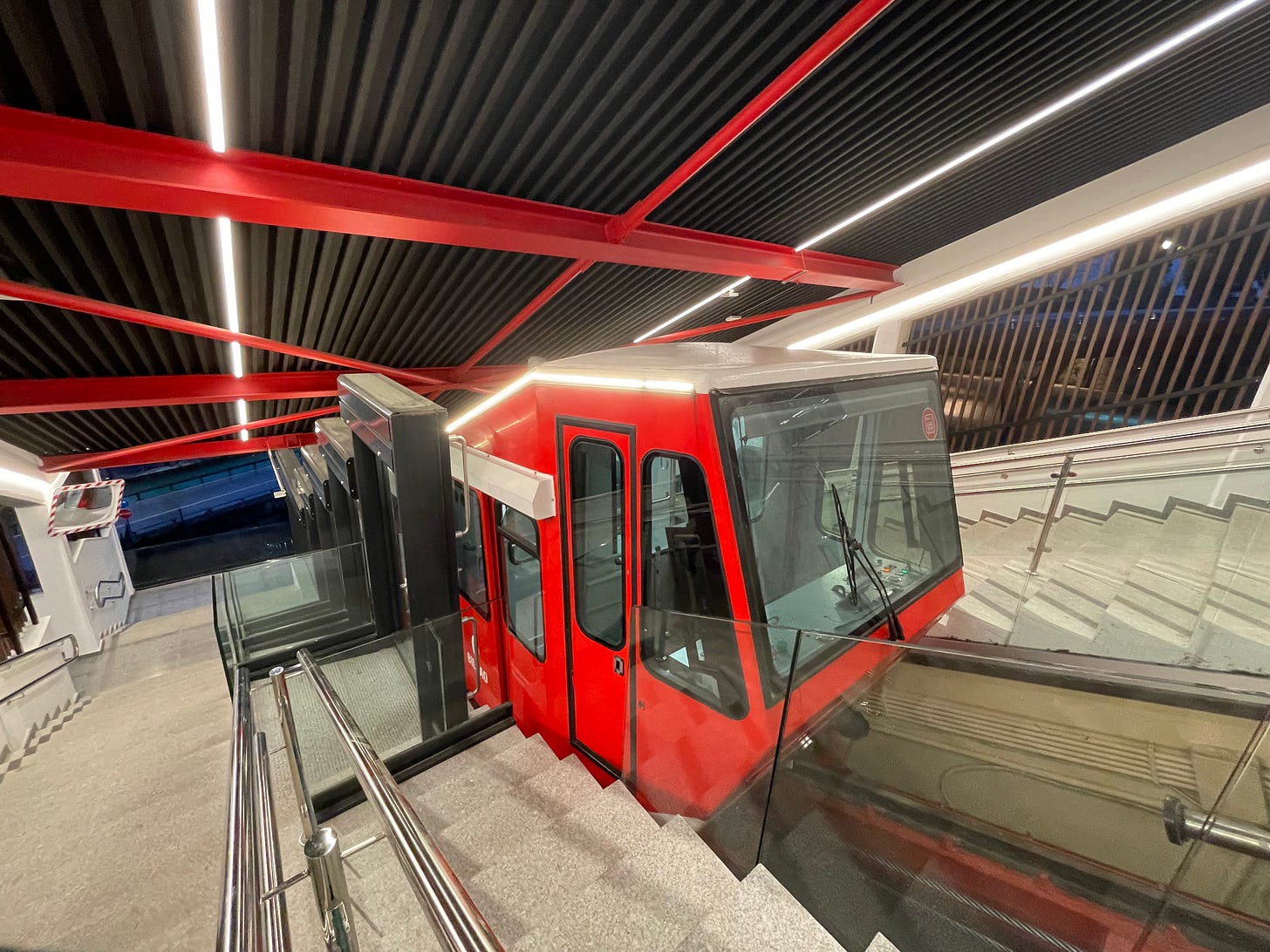 La prima sera abbiamo preso la funicolare di Artxanda, che porta a un bel punto panoramico. Il pensiero è stato di documentare subito questo momento per mio figlio che ama vedere i video di treni e mezzi di trasporto. Abbiamo commentato il fatto che ci fosse un solo capitano (conducente) e che la salita fosse veloce. Ancora adesso, a distanza di una settimana, chiede di vedere quei filmati.